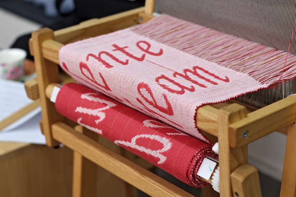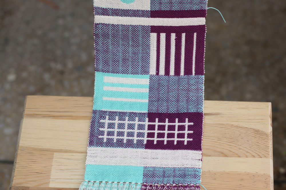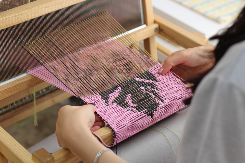 이중직은 두 장의 직물을 동시에 짜는 방식으로 보통 직물을 짜는 규칙적인 패턴에서 벗어나 좀 더 자유로운 디자인 작업이 가능합니다.
